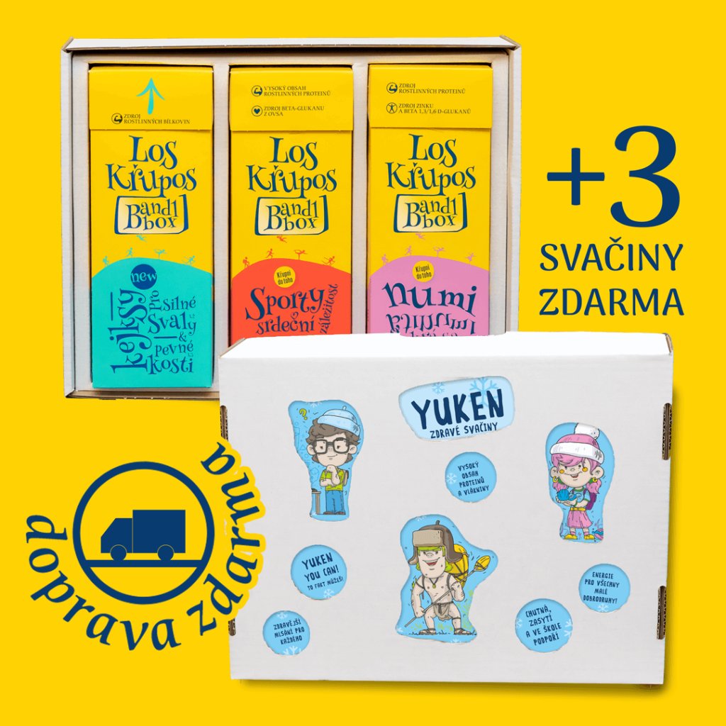 SCHOOL YUKEN je víc než jen zdravá svačina – je to zážitek. Balíček se třemi bandlboxy plných snacků KEJKSY, SPORTY a NUMI skvěle zasytí a dodá energii. Navíc děti čeká parádní kreativní výzva – mrkněte do našeho Zápisníku. Chutné, hravé a nutričně vyvážené – přesně takové jsou svačiny, které děti baví.
